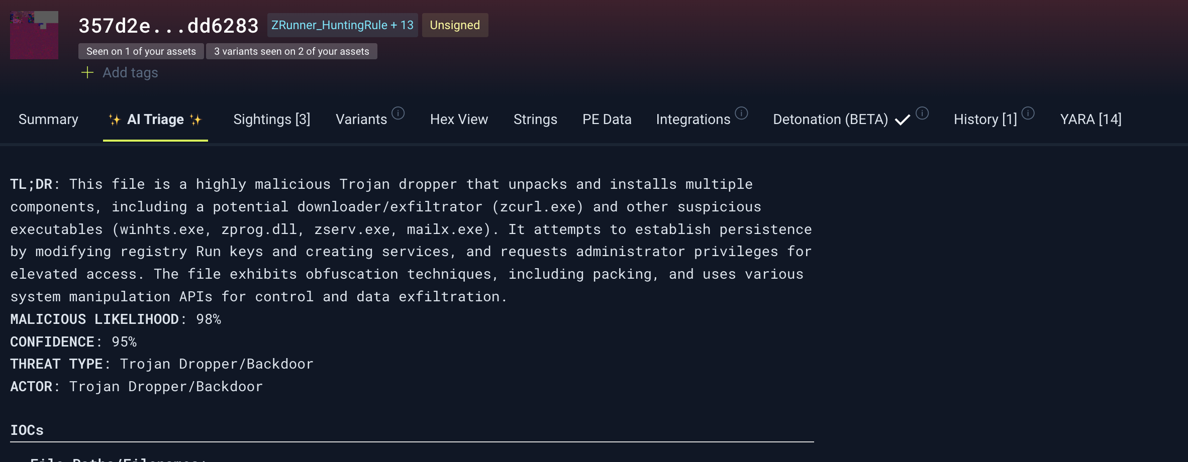 AI Triage performs analysis on uploaded files to determine their potential maliciousness.