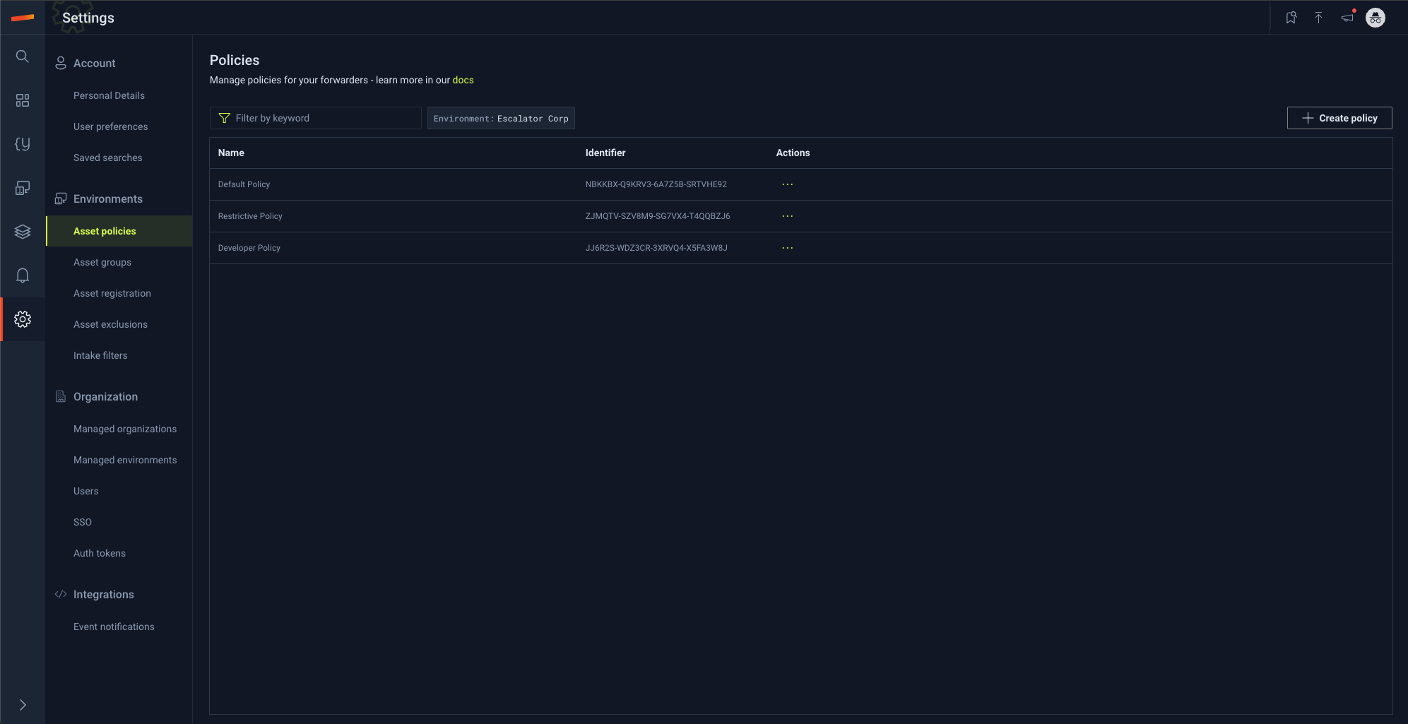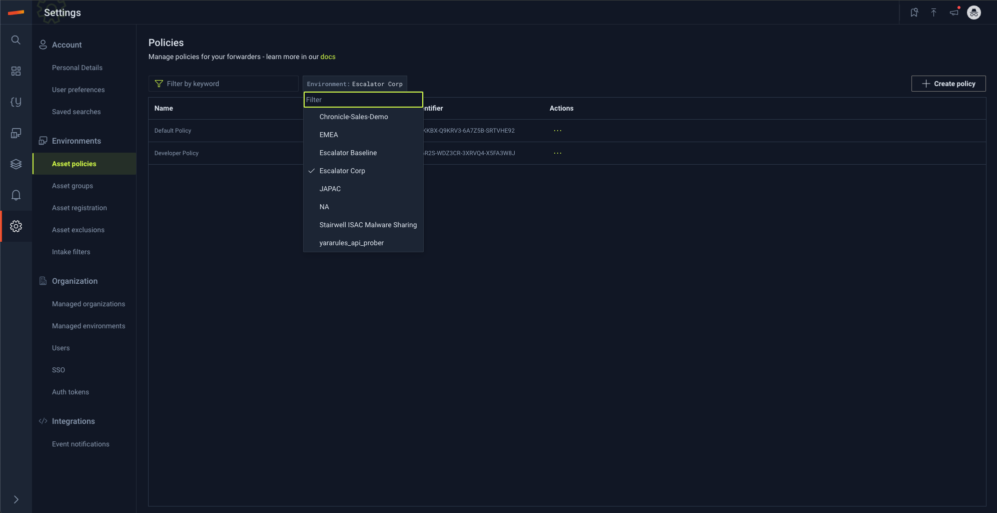 Policies are applied at the environment level meaning that a policy can not be used across multiple environments.
