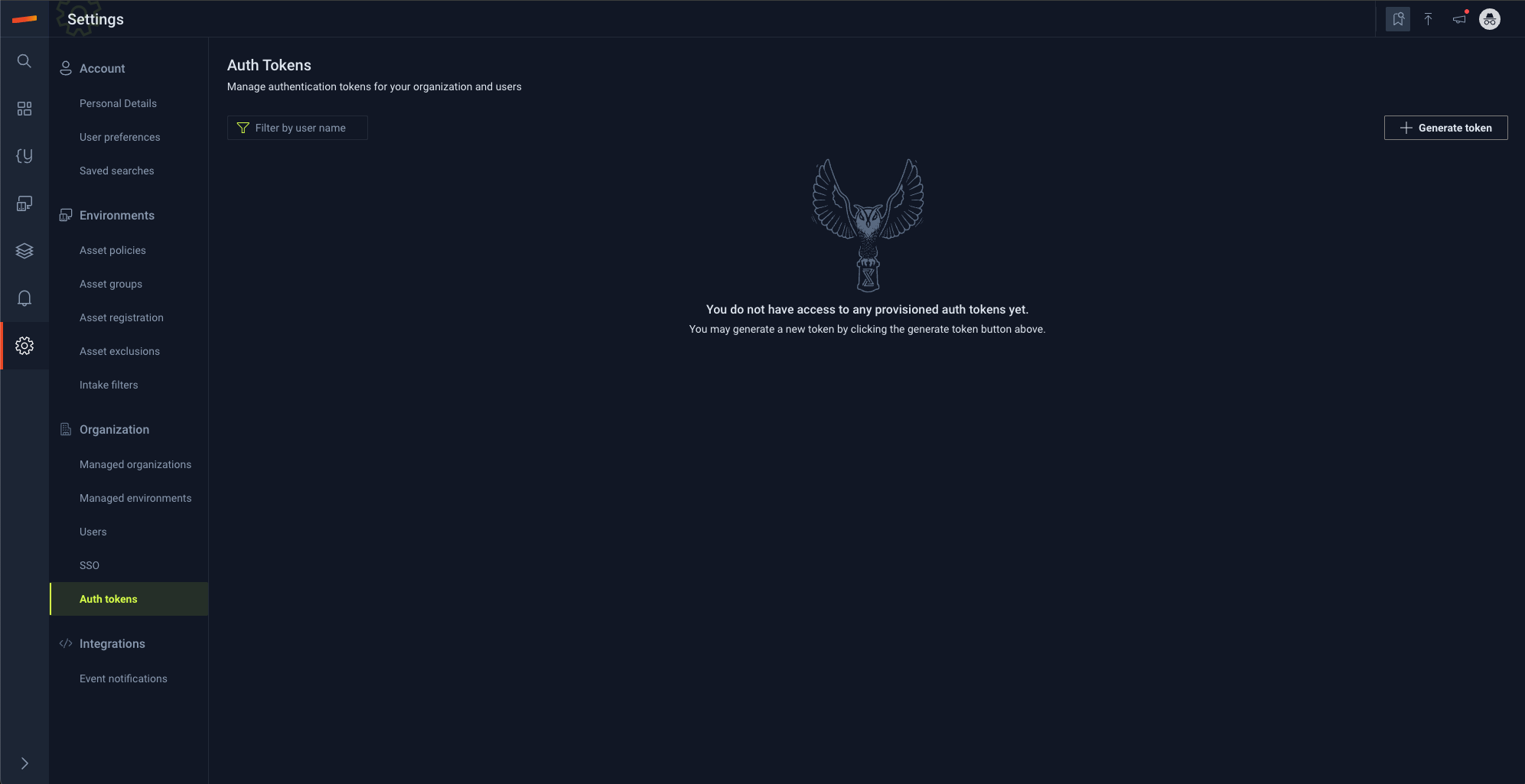 Copy the auth token and set aside securely as the token will never be displayed again.