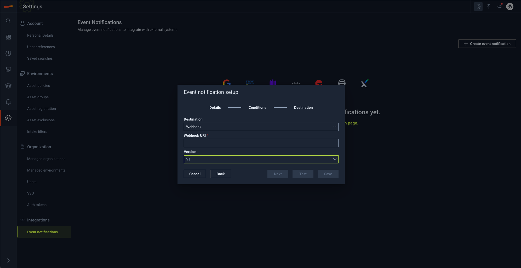 Select the condition(s) to get notified through this webhook. At least one must be selected.