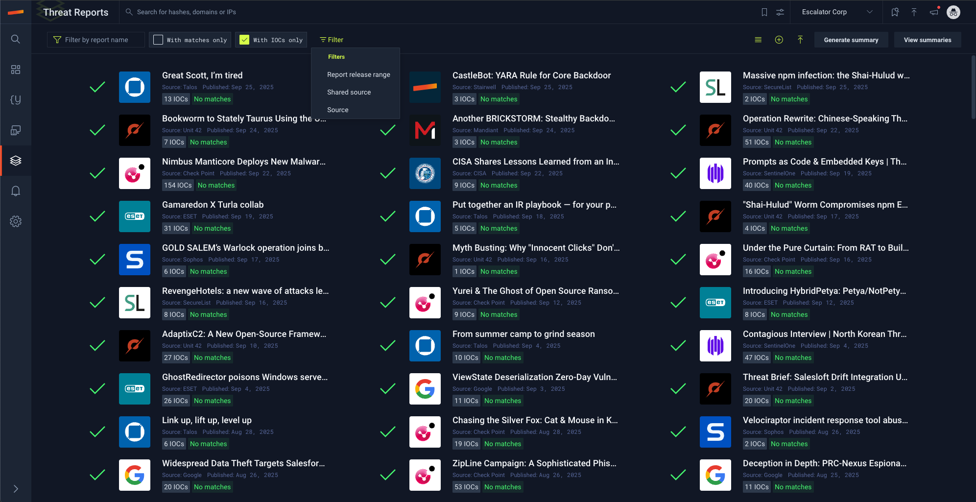 Filter Threat Reports
