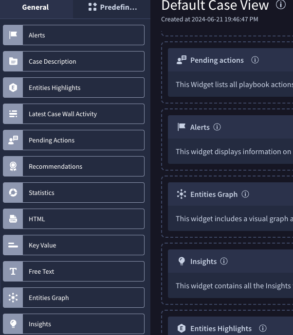 - Add the Insights widget under General to enable IOC enrichment visibility inside cases