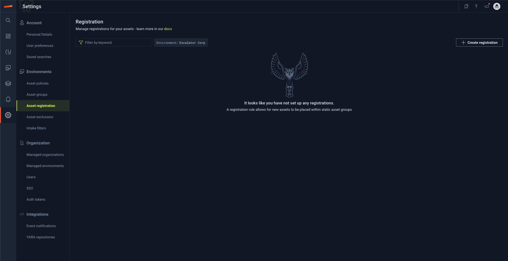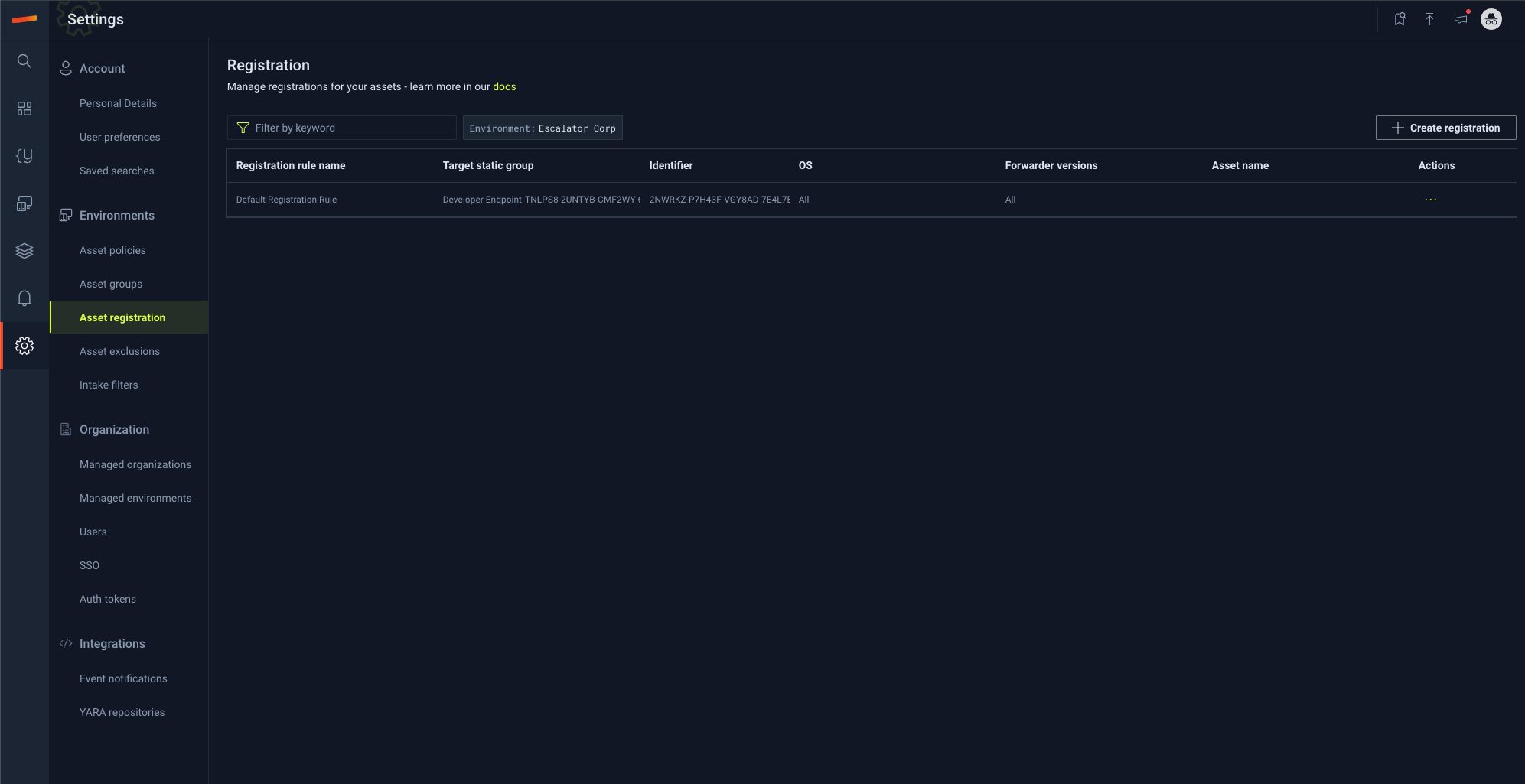 Select "+ Create registration"